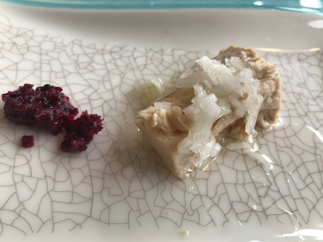 DE APERITIVO NOS DIERON TXITXARRO MARINADO EN CASA , MANTENIENDO MUY EQUILIBRADO LOS SABORES .